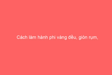 Hành phi của bạn thường không đều màu và bị cháy? ...